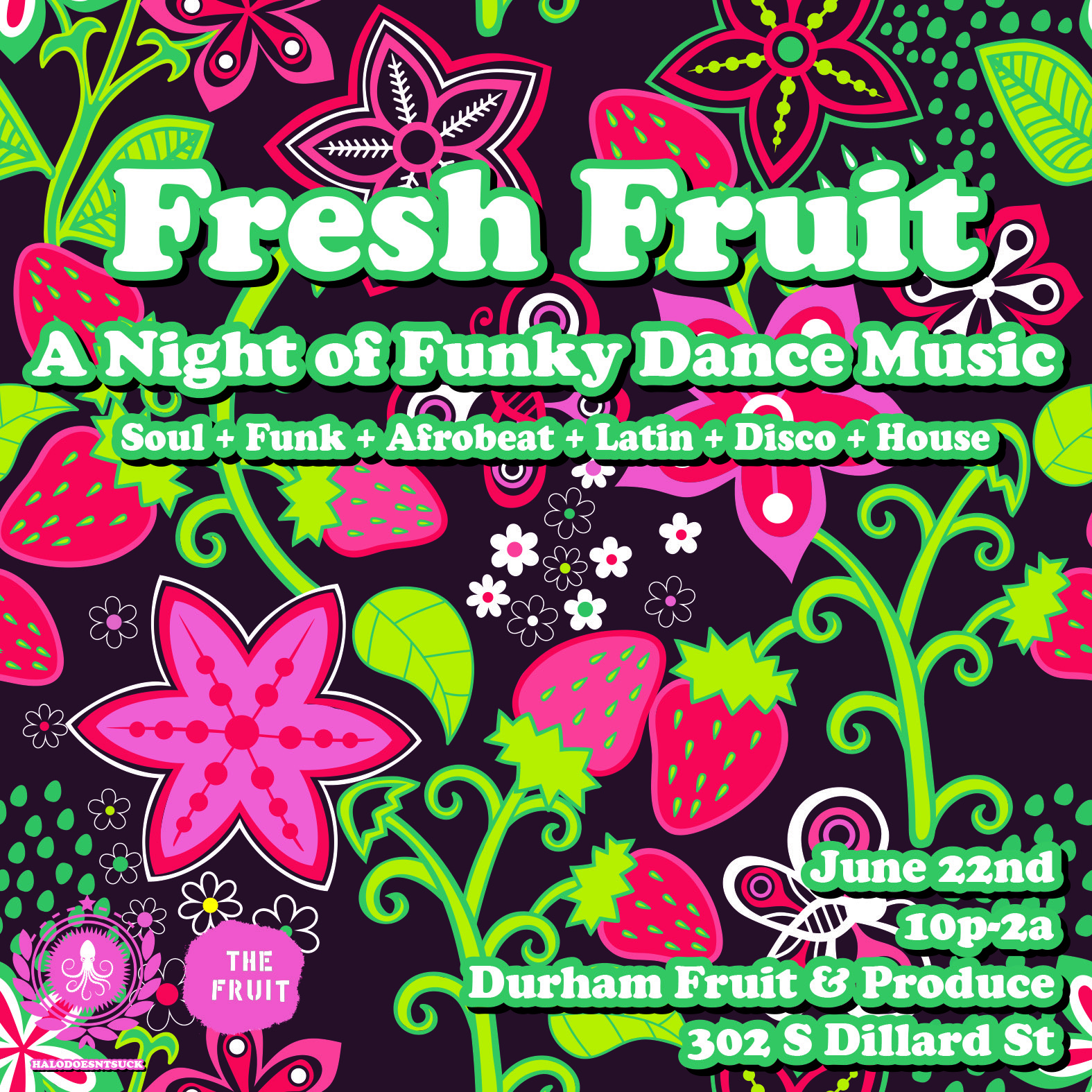 It was used as a promotion for the below event at Durham Fruit and Produce Co called Fresh Fruit: A Night of Funky Dance Music which was a monthly until the pandemic.
